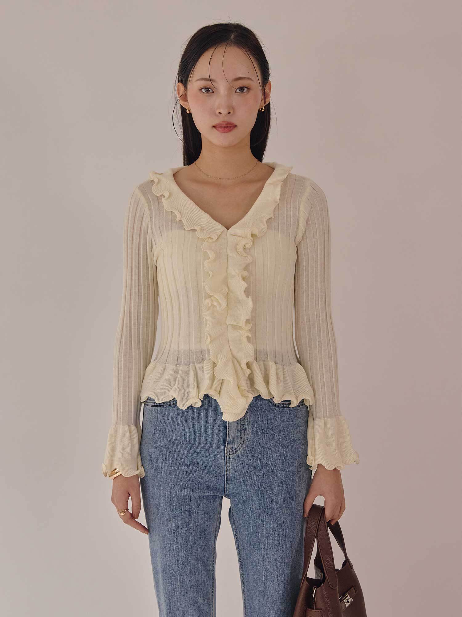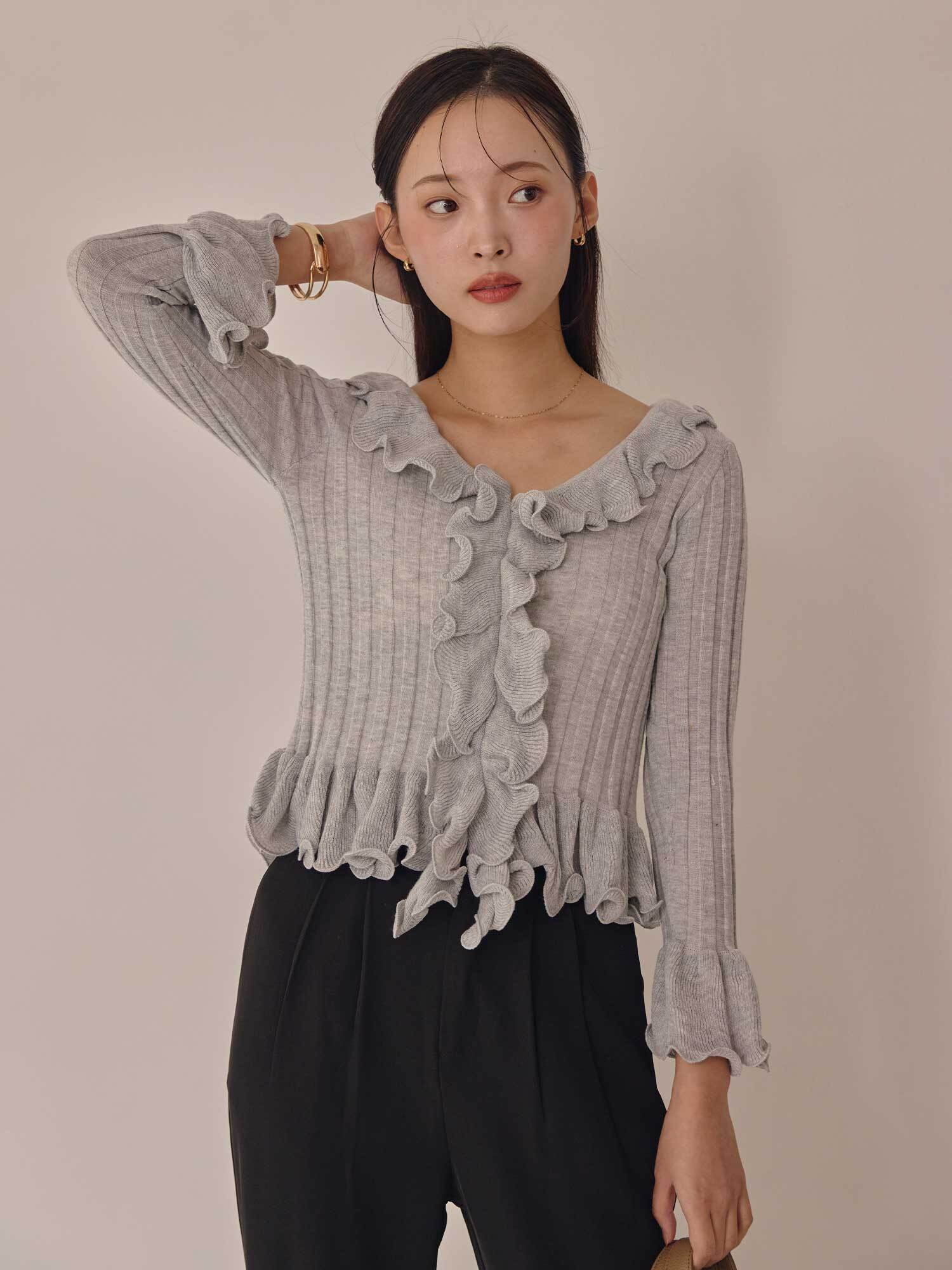 シンプルながらも、フリルが華やかさを添え、女性らしい印象を引き立ててくれます。