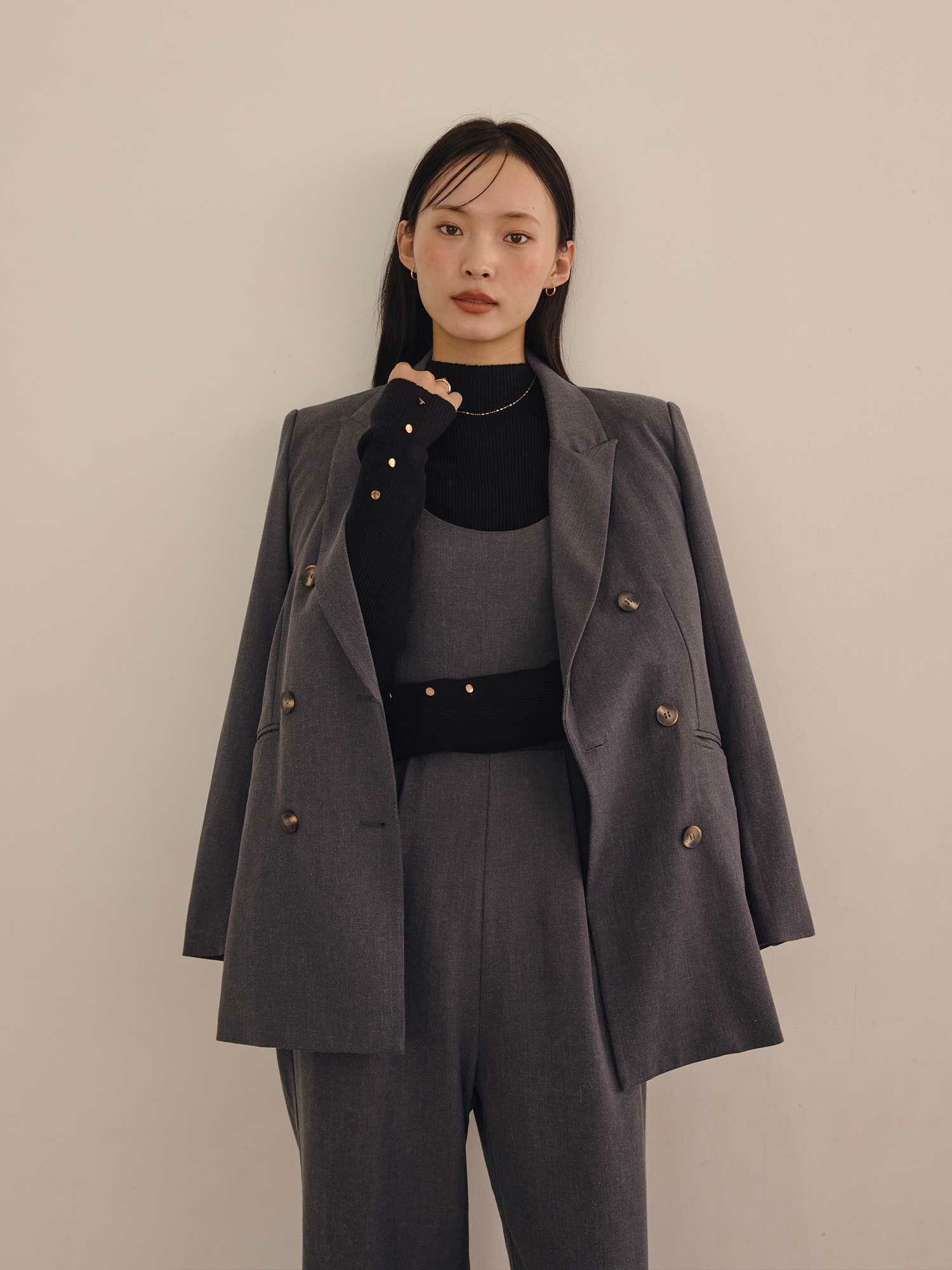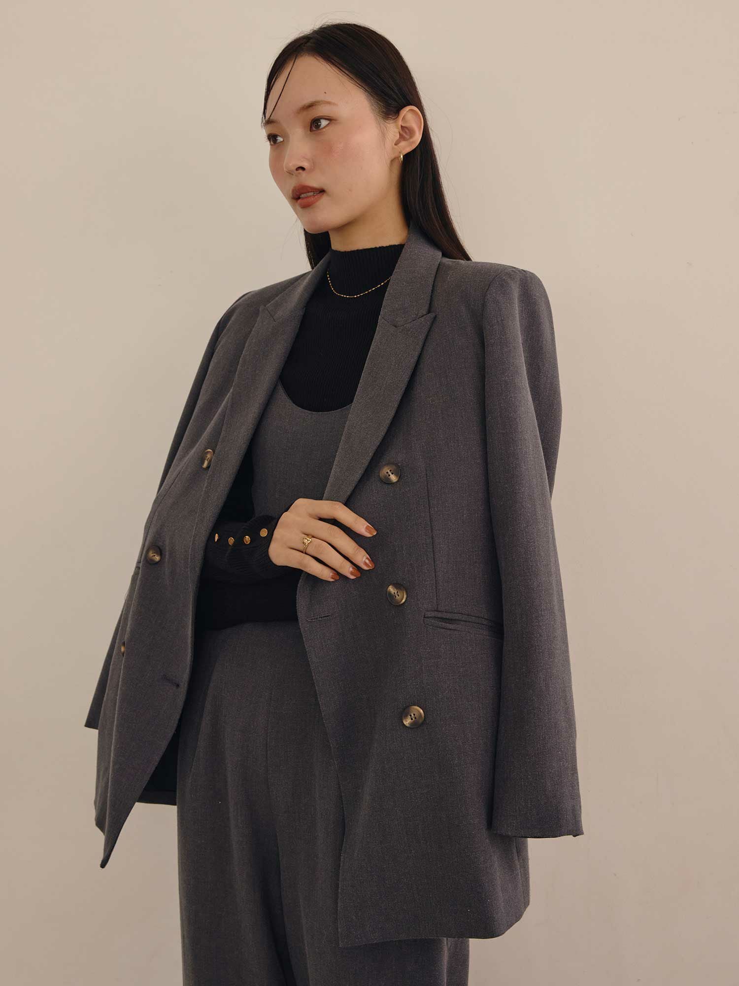 セットアップでの着用はもちろん、ワンピースに合わせて綺麗めなスタイリング~デニムでカジュアルダウンしたコーディネートまでTPOに合わせて活躍する一枚です。