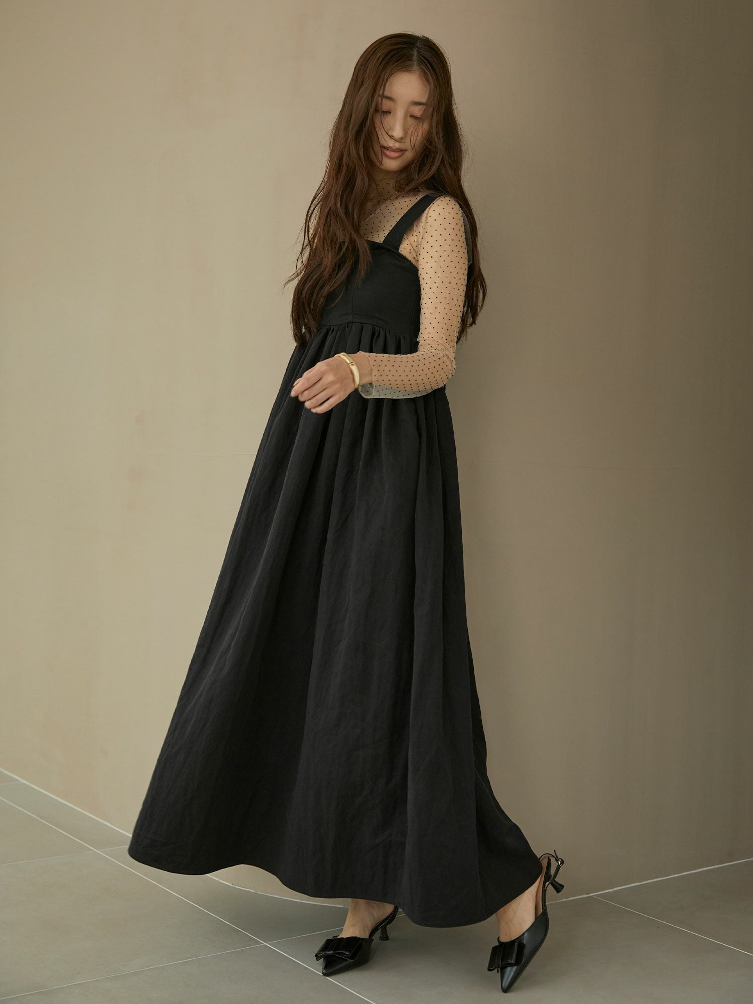 裏地にはチュールを仕込み、ふわっと広がりの出る仕様に。