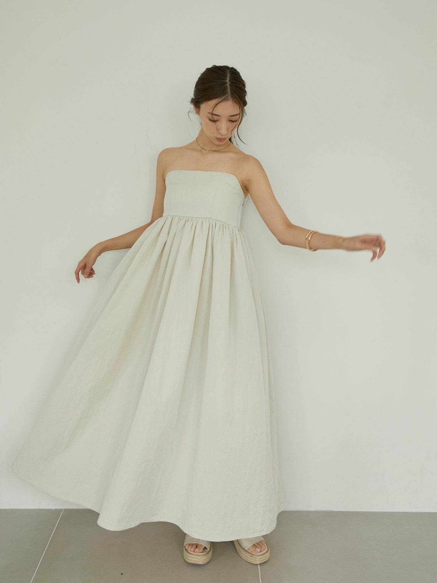 今季はショルダーが取り外し可能で、①ベア型②ホルターネック③ショルダー の3WAY仕様に。